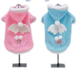 Hooded soft coat with plush trim and adorable attached angel wings on back. Available in Baby pink/blue. Imported poly. SIZE MEDIUM: CHEST 12.0"-13.5" LENGTH 10.0"-12.0"